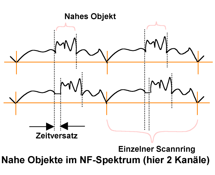 Die folgende Grafik zeigt die Impulsschemata, wobei das NF-Spektrum nicht als feinstreifige Bitsäule, sondern als analoger Wellenzug gezeichnet ist: